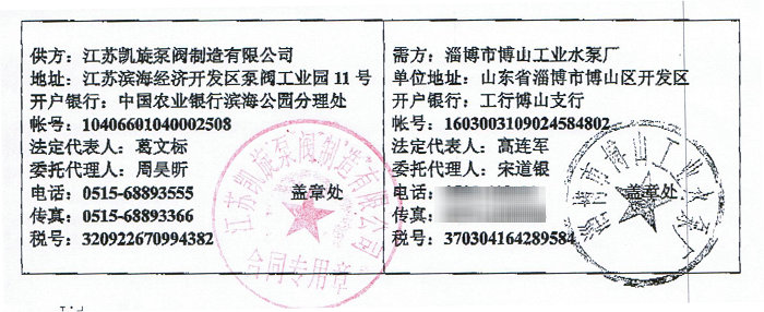 江蘇凱旋泵閥制造有限公司與淄博市博山工業(yè)水泵廠簽訂