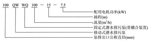 WQ固定式高效無堵塞潛水排污泵型號說明