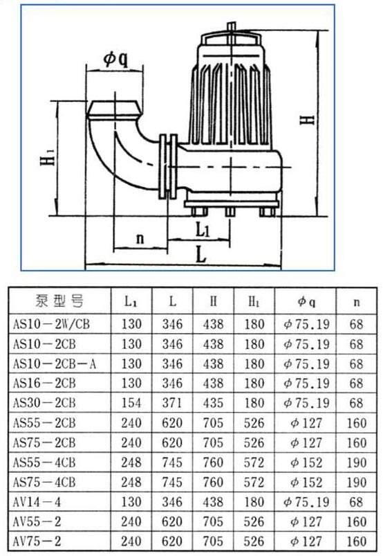 AS/AV型撕裂潛水排污泵技術(shù)參數(shù):