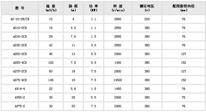 AS/AV型撕裂潛水排污泵性能參數(shù):