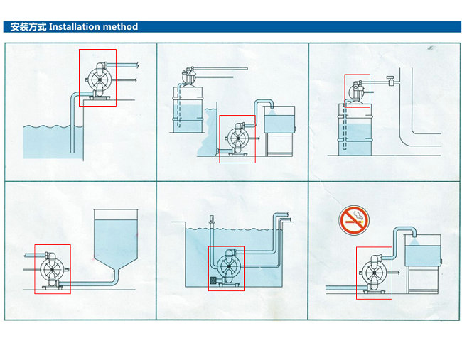 QBY第三代氣動(dòng)隔膜泵的安裝方式: