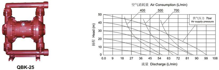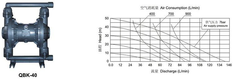 QBY-K-50新型工程塑料氣動隔膜泵不需灌引水,吸程高達7m,揚程達50m,出口壓力≥6kgf/c㎡。流動寬蔽,通過性能好,允許通過QBY氣動隔膜泵既能抽送流動的液體,又能輸送一些不易流動的介質,具有自吸泵、潛水泵、屏蔽泵、泥漿泵和雜質泵等輸送機械的許多優(yōu)點。