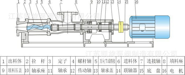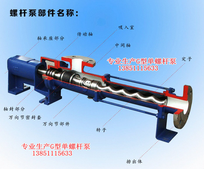 這種泵零件少、結(jié)構(gòu)緊湊、體積小、維修簡便,轉(zhuǎn)子和定子是本泵的易損件結(jié)構(gòu)簡單,便于裝拆。